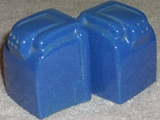The #45 design is one of two shakers appearing in the 1936 catalog.  They appear again in the 1938 catalog.  The 1942 catalog changes the mold number to #45H and refers to them as “Modern Carved Cubes”.   The 1943 catalog pictures this shaker but does not show a number and description, yet we know from the glazes available that Frankoma produced this shaker in the 1942 era as well as before the 1938 fire.