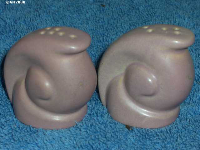 558H Snails, glazed dusty rose, S5/P6 pour holes, no marks. Although this glaze is not really translucent the clay commonly shows through dusty rose on the edges. This is typical of the Type 1 design from the early post-fire period.