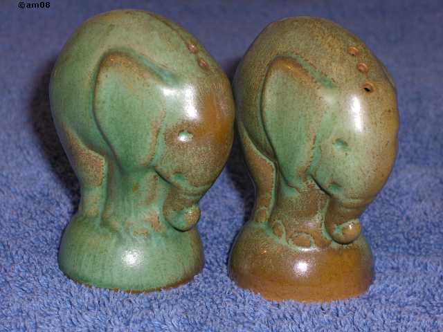 160H Elephants, patina glaze (renamed prairie green after 1944), 3/2 hole set, no base marks.