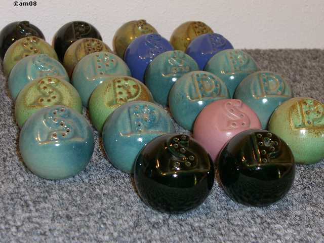 40H Cannon Ball group. Well over half of the available example are glazed prairie green. You can see here that the various blues are also somewhat available. After that it gets really tough.