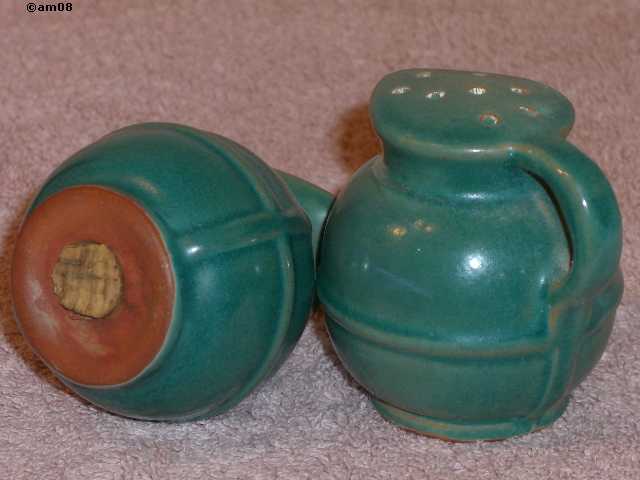 93H Guernseys, 1942 turquoise glaze, S8/P6 hole pattern, no base marks. The clay here is very red and is easily confused with the later Sapulpa clay. I have four sets of these all on the same red clay.